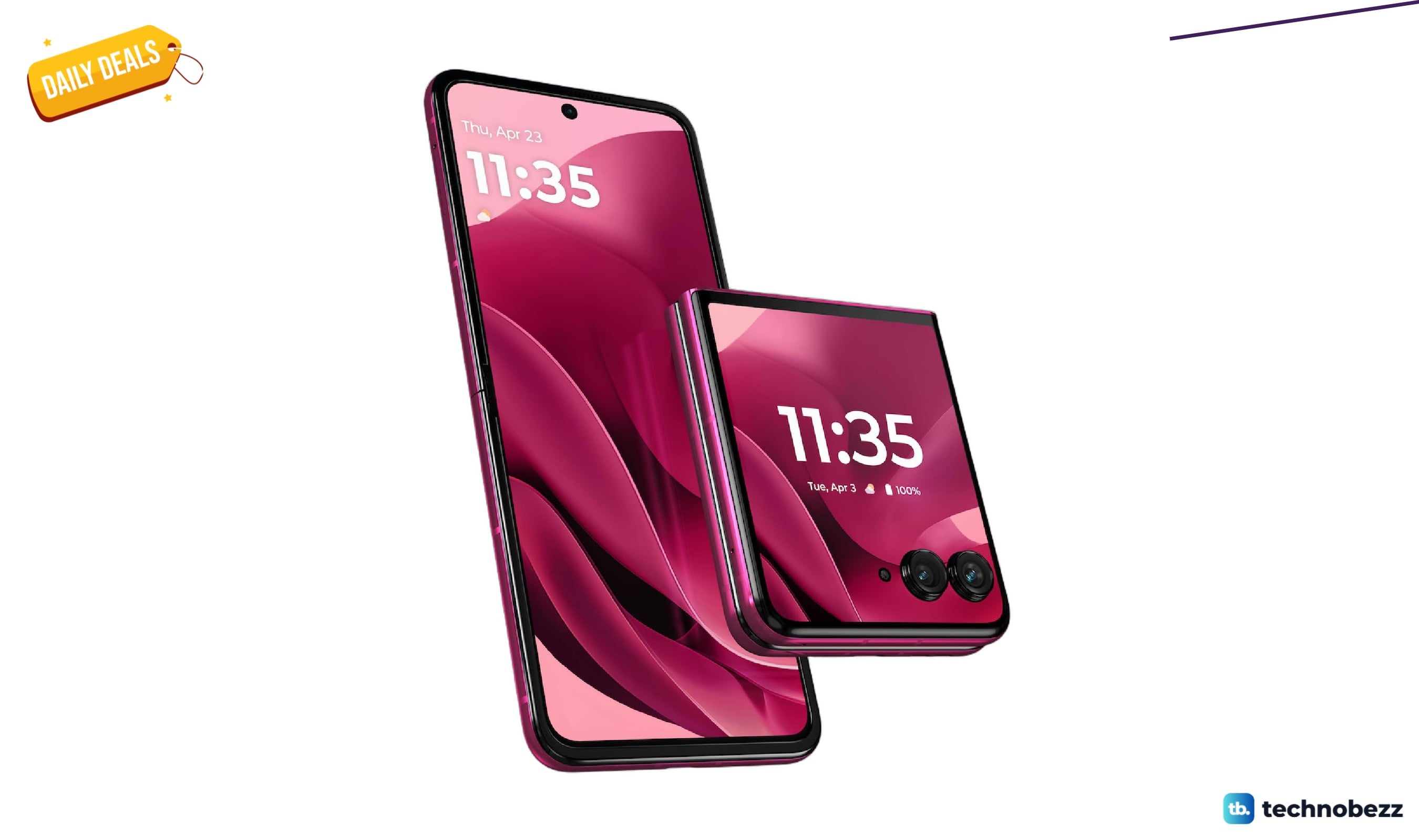 It packs a 50MP camera system powered by moto ai, the Snapdragon 8 Elite chipset, and 16GB of RAM with 512GB of storage. The external display lets you run nearly any app without flipping the phone open, and the Pantone Cabaret finish gives it a distinct look you will not find on Samsung's foldables.