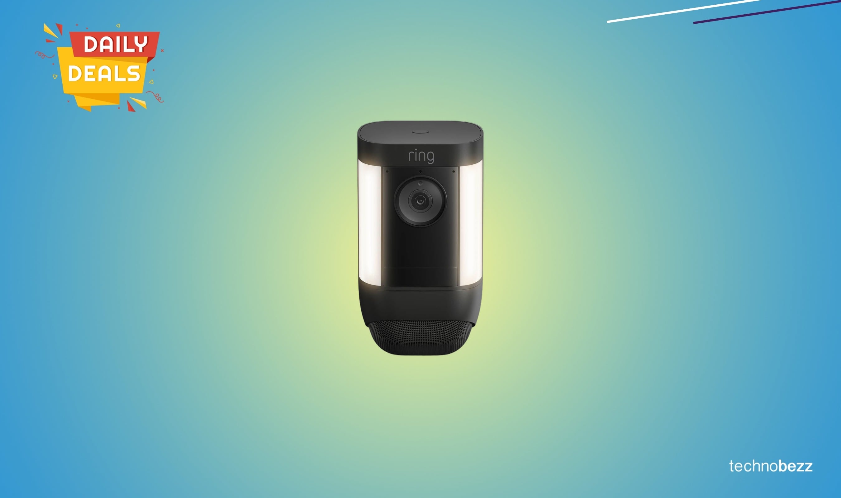 Save $33.39 on the wireless Ring Spotlight Cam Pro with 2K video, color night vision, and an extra battery pack for flexible outdoor security.