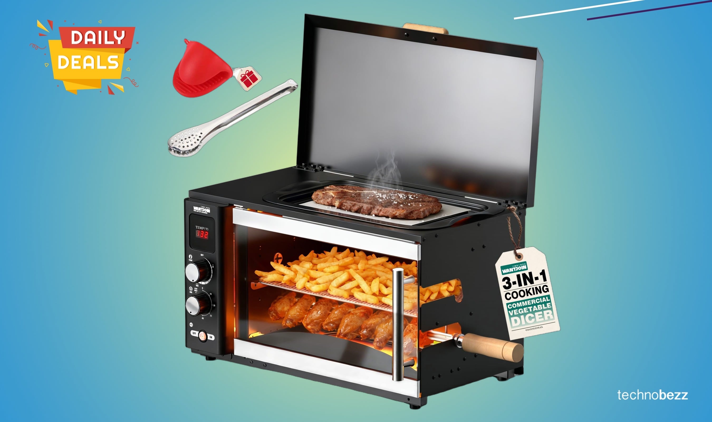 Countertop cooking just got more affordable. The WantJoin Electric Rotisserie Oven offers three cooking zones in one compact appliance, and it's currently available at a significant discount.