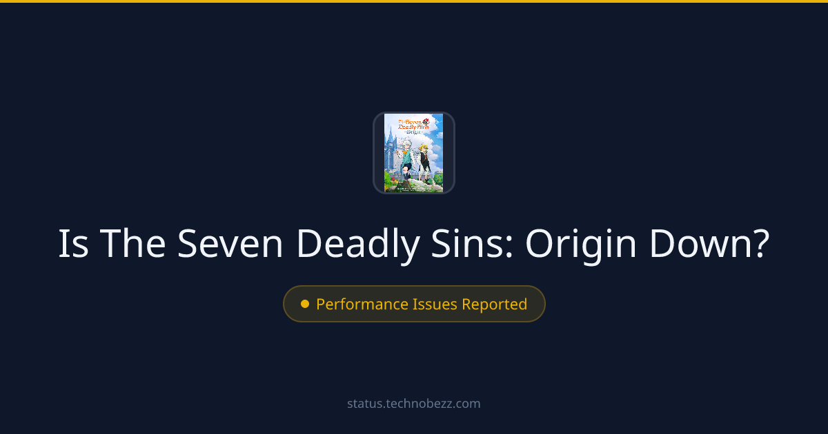 The Seven Deadly Sins: Origin status update: The Seven Deadly Sins: Origin Performance Degraded. Some The Seven Deadly Sins: Origin players may experience connection problems. 16 reports from 7 players. Earlier activity: 24 reports in the past hour; 47 reports in the last 24h.