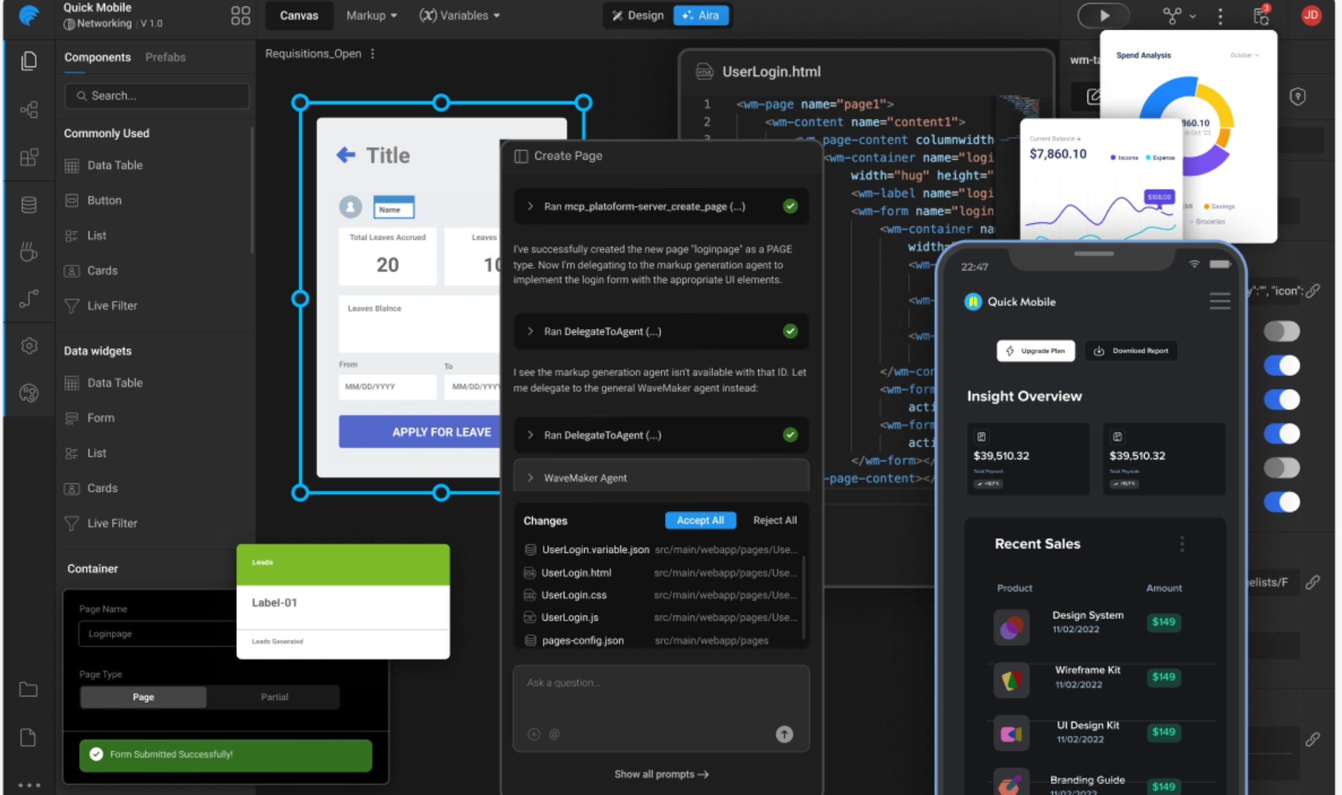 WaveMaker is going after this exact gap with WaveMaker, an agentic application generation platform built for enterprise development teams. Instead of bolting AI onto existing coding workflows, WaveMaker pairs AI-powered generation with deterministic code output.